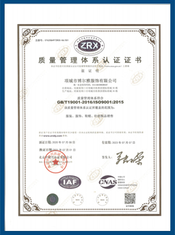 公司已通過ISO9001:2015質(zhì)量管理體系認(rèn)證、ISO14001:2015環(huán)境管理體系認(rèn)證、ISO45001:2018職業(yè)健康安全管理體系認(rèn)證。產(chǎn)品已通過中國(guó)檢驗(yàn)認(rèn)證集團(tuán)檢測(cè)。企業(yè)信用等級(jí)為AAA。